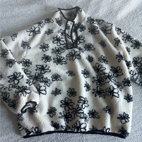 Parke oversized floral black and white teddy pullover