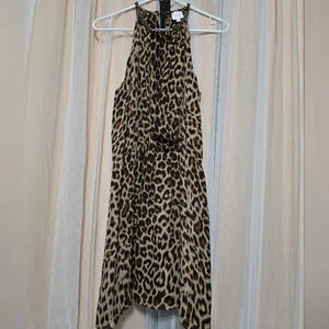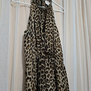Parker 100% Silk Chain Collar Halter Leopard Print Mini Dress. Women's size Large, excellent condition!