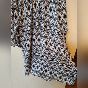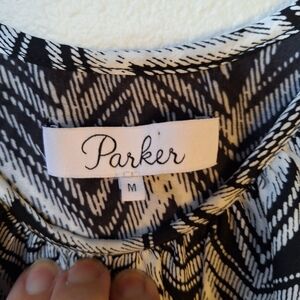 Like new condition Parker Black and white cold shoulder agave dress. 100% silk. Scoop neckline. Mini length. Womens size M Pit to pit flat lay 18.5" length from neckline to hem 31" measurements are approximate
