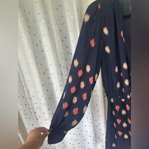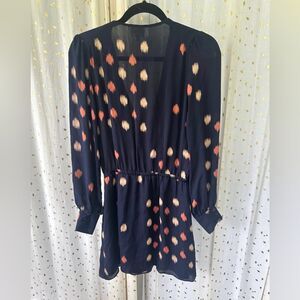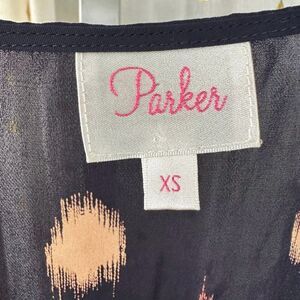 Parker 100% Silk Sheer Paint Brushstroke Polka Dot Surplice Elastic Waist Dress XS