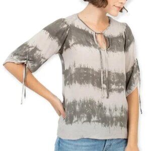 Parker 100% Silk Short Sleeve Keyhole Blouse Top, XS