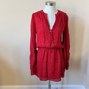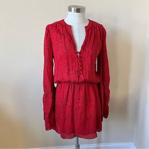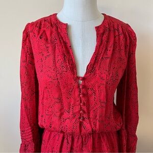 Parker 100% silk layered ruffle sleeve blouson dress red snake 26226