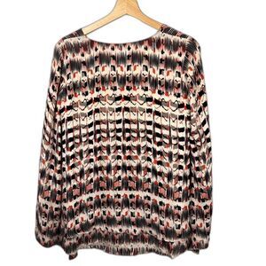 Parker Abstract Long Sleeve Blouse w/ Bell Sleeves and V- Neck, Size S, EUC