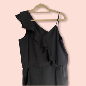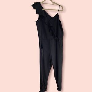 New never worn. Parker Addison One-Shoulder Jumpsuit. Black crepe (100% Polyester). Jumpsuit. Sleeveless. V-neckline. Hidden front snap button closure. Pockets.