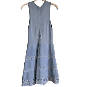 Parker Alabama Blue Knit Sleeveless Tank Dress Fit Flare Leather Trim Size Small