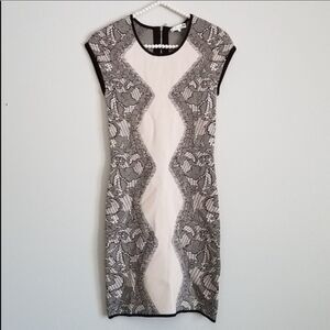 Parker Alexander Nude Black Knit Lace Slimming Body Con Mini Dress M