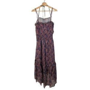Parker Amethyst Floral Silk Chiffon Purple & Red Floral Midi Dress M