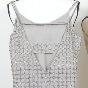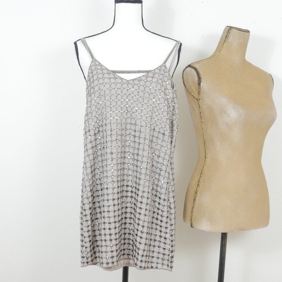 Parker Anthropologie Gray Silver Beaded Art Deco Flapper Size XS Mini Slip Dress