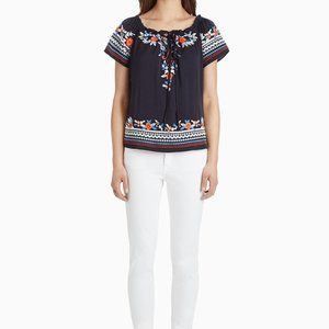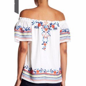 Parker NY Ariel Bright Embroidered Top Colorful embroidery gives a whimsical touch to this off-the-shoulder blouse. - Elasticized off-the-shoulder neckline - Short sleeves - Allover colorful embroidery - Lined - Approx. 21" length (size S) -Fully lined- 100 polyester- Like New wore once