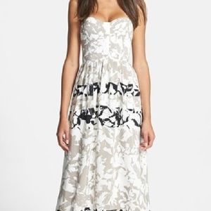 The warm weather favorite maxi dress gets an update from Parker with a quilted bodice and a white and blue "Oceanside" hue. The sweetheart neckline allows you to show off a vibrant bubble necklace perfect for Springtime glam.
