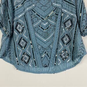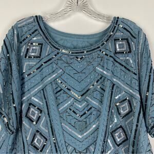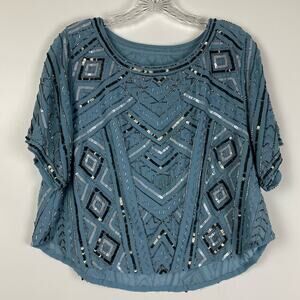 Parker Beaded Chiffon Blouse Frost Blue Cocktail Party Women’s Size Small