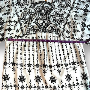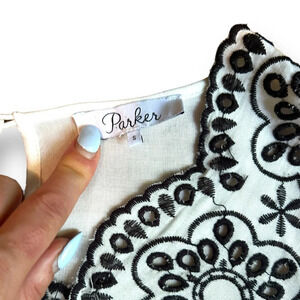 Parker Beth Eyelet Shift Dress Embroidered Mini Black White Size Small Scalloped