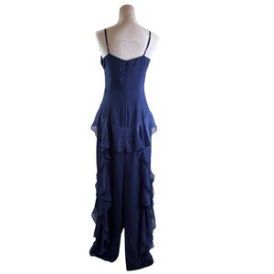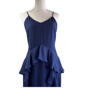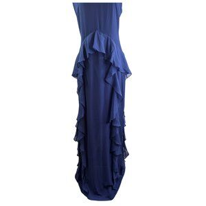 Parker Black Chiffon Ruffle Spaghetti Strap Formal Dress Eclipse Blue Size 8 NWT $418 MSRP