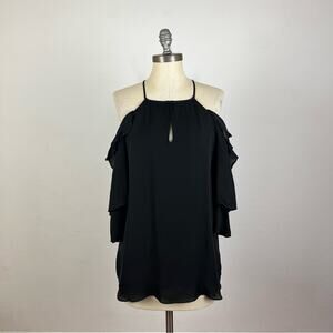 Parker Black Cold Shoulder Ruffle Silk Blouse