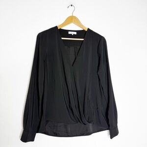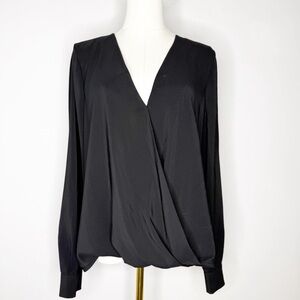 Parker Black Draped V-Neck Blouse Size Large Long Sleeve Similar to Rag & Bone Dean