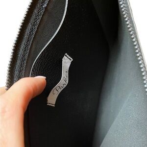 Parker Black Faux Pebbled Leather Zipper Fringe Pouch