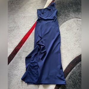 Parker Black Label Paxon Navy Ruffled One Shoulder Gown