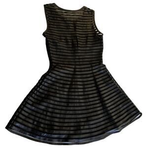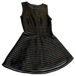 Parker Black Leather Stripe Mesh Panel Sleeveless Fit & Flare Mini Dress Size XS