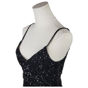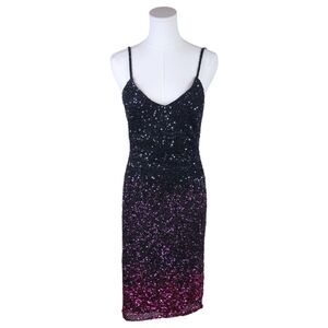 Parker Black Ombré Sequin Cocktail Dress V-Neck Backless Size 4 Quality Glam