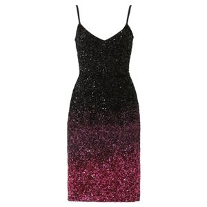 Shimmer, shine, and slay in this striking Parker Black ombré sequin cocktail dress, designed to make a bold entrance for your next night out, holiday party, or upscale event. This sleeveless bodycon dress features a sleek black-to-magenta sequin gradient, catching the light with every movement and adding instant drama and glam to your look. The deep V-neckline and low scoop back strike the perfect balance between sultry and sophisticated, while the slim silhouette flatters the figure for a confident, curve-enhancing fit.