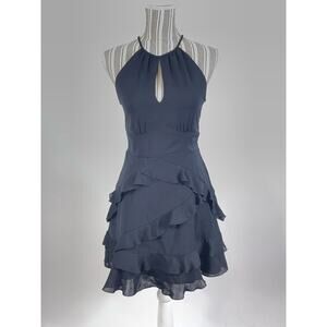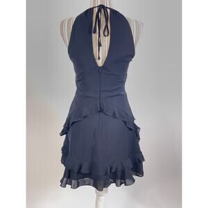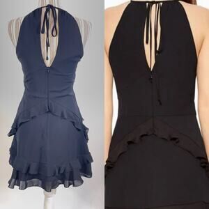 This dress features a chic halter neckline and playful ruffle detailing, perfect for a night out or special occasion.