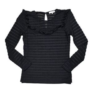 Parker Black Ruffle Textured Mesh Overlay Carmen Top S