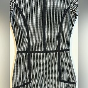 Parker Black and White Geometric Structured Knit Mini Sheath Dress- Small