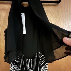 Parker Blk/Ivory Beaded Halter Dress M