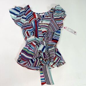 Parker Blouse Women small Multicolor Striped Flutter Sleeve Huntington Top new