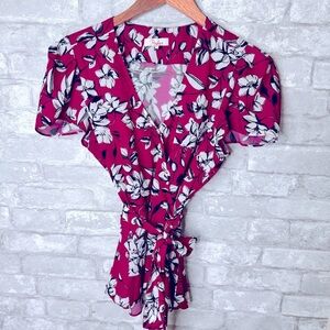 Parker Blouse full wrap blouse,top, flattering, magenta floral SZ large EUC