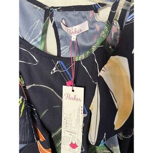 Parker Bold Tropical Flower Flutter Sleeve Neck Detail Ruffle Top NWT