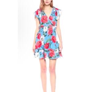 Parker Bondi Flutter Sleeve Smocked Waist Dress in Maritime Wallflower Sz Large