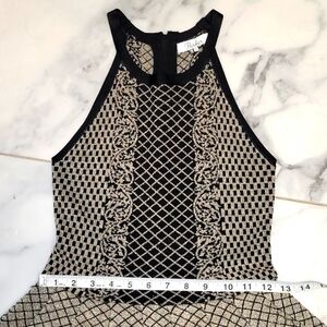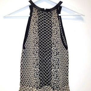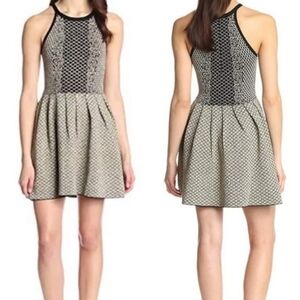 Parker Candice Black & Gold Metallic Knit Pleated Flared Dress Size P (S)