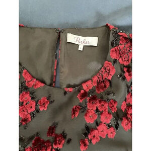 Parker Carmindy Floral Velvet Burnout Dress Black Red Women’s Size Small
