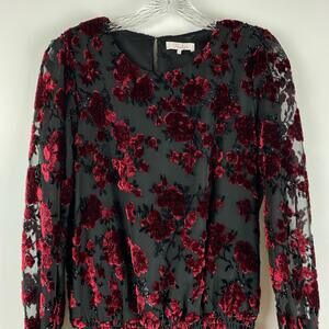 Parker Carmindy Floral Velvet Burnout Dress Black Red Womens Size Small