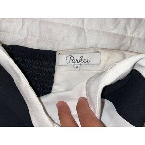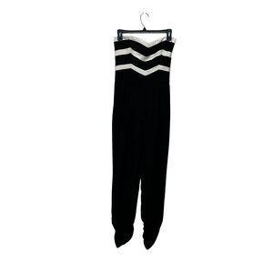 Parker Black & White Strapless Chevron Elegant Women's Jumpsuit Size M