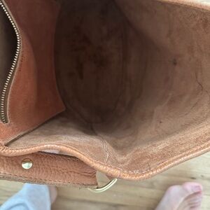 This tan leather shoulder bag offers a spacious interior and a sleek, structured design. Its smooth texture and wide opening make it a versatile choice for everyday use. The bag's elegant style is perfect for both casual outings and more formal occasions.
