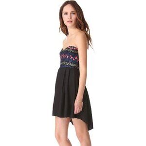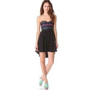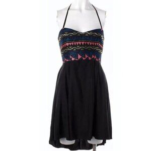 Heavy geometric / tribal embroidered bodice on the Cleo halter mini dress by Parker. Size S.