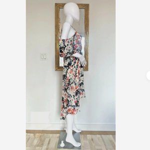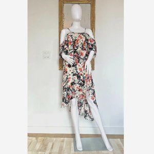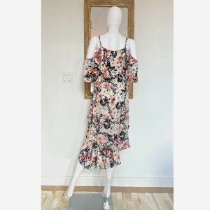 Parker Cold Shoulder Ruffle Midi Floral Small Dress