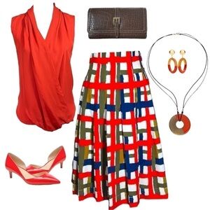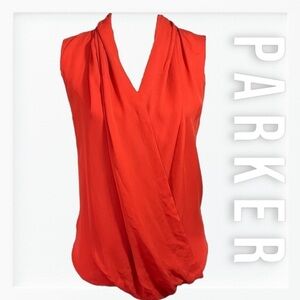 Parker Coral Red Drapped Front Sleeveless Blouse sz S