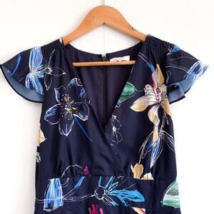 Parker Cosmic Fleur Flutter Short Sleeve Mini Ruffle Dress Navy Multi Small