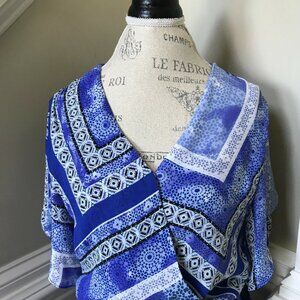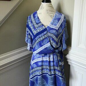 Parker Dominica Midi Dress Womens Medium Blue White Faux Wrap Dolman Sleeve