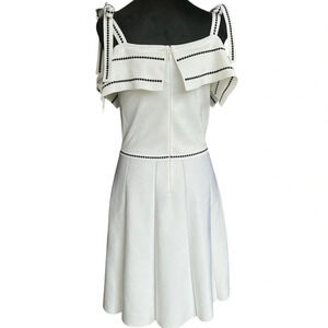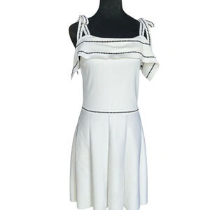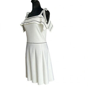 Parker Dorothy White Knit Cold Shoulder Tie Dress A-Line Stitched Design Size M