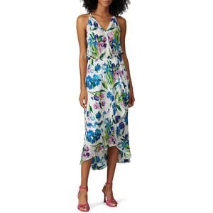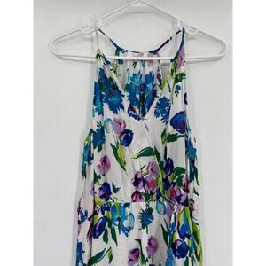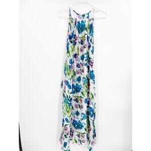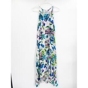 Parker Dottie White Floral Print Silk Blend Sleeveless Midi Dress Size M