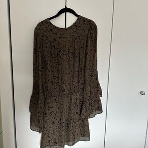 NWT Parker Double Flare Sleeve Dress In Brown Camo