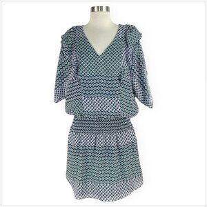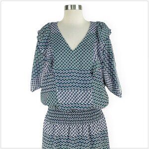 Parker Dress Luisa Cese Geo Geometric Print Smocked Waist Blouson Draped NWT M