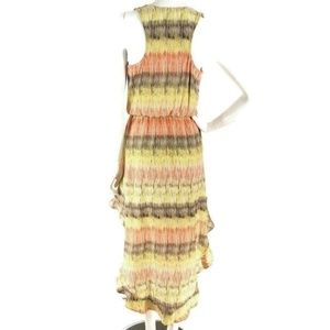 Flowy high/low hem line, sleeveless, wide straps to conceal bra, criss cross wrap top, stretch waist.