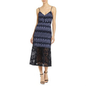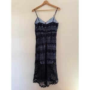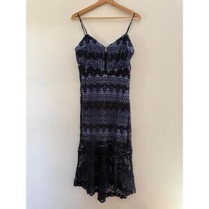 Parker Dress Womens Size S Navy Blue Midi Lace Spaghetti Strap Elegant Chic
