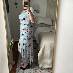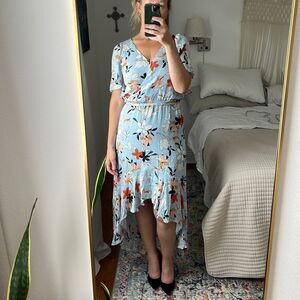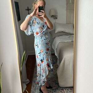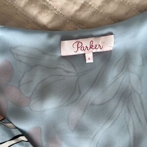 Parker Dress Womens Small Blue Silk Floral Midi Ruffle High Low