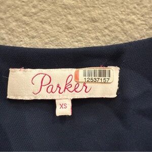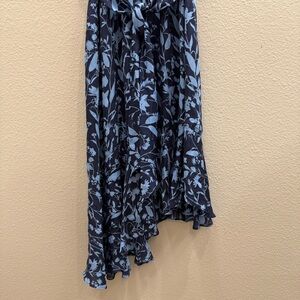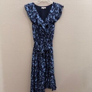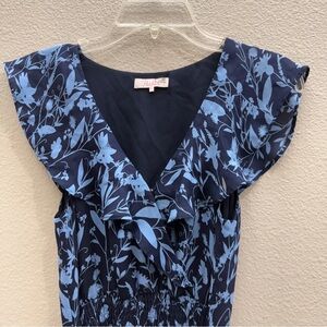 Parker Dress XS Brynlee Blue Midi Sundress Floral Flutter Cap Sleeves Silk